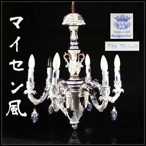 【吉】CO330 十九世紀 東ドイツ製 【マイセン風】 GDR フォン・シアーホルツ 吊りランプ 照明 六灯