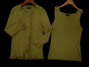 23区 ウール混 フリル アンサンブル カーディガン size40/カーキ ◇■ ☆ fkb7 レディース