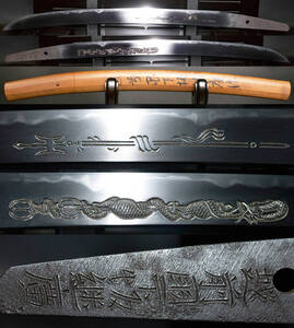 刀身彫り.二重樋.鍛肌.近江守藤原継平.安永二己年春日.状態の良い一振りです.拵刀剣刀装具武具甲冑